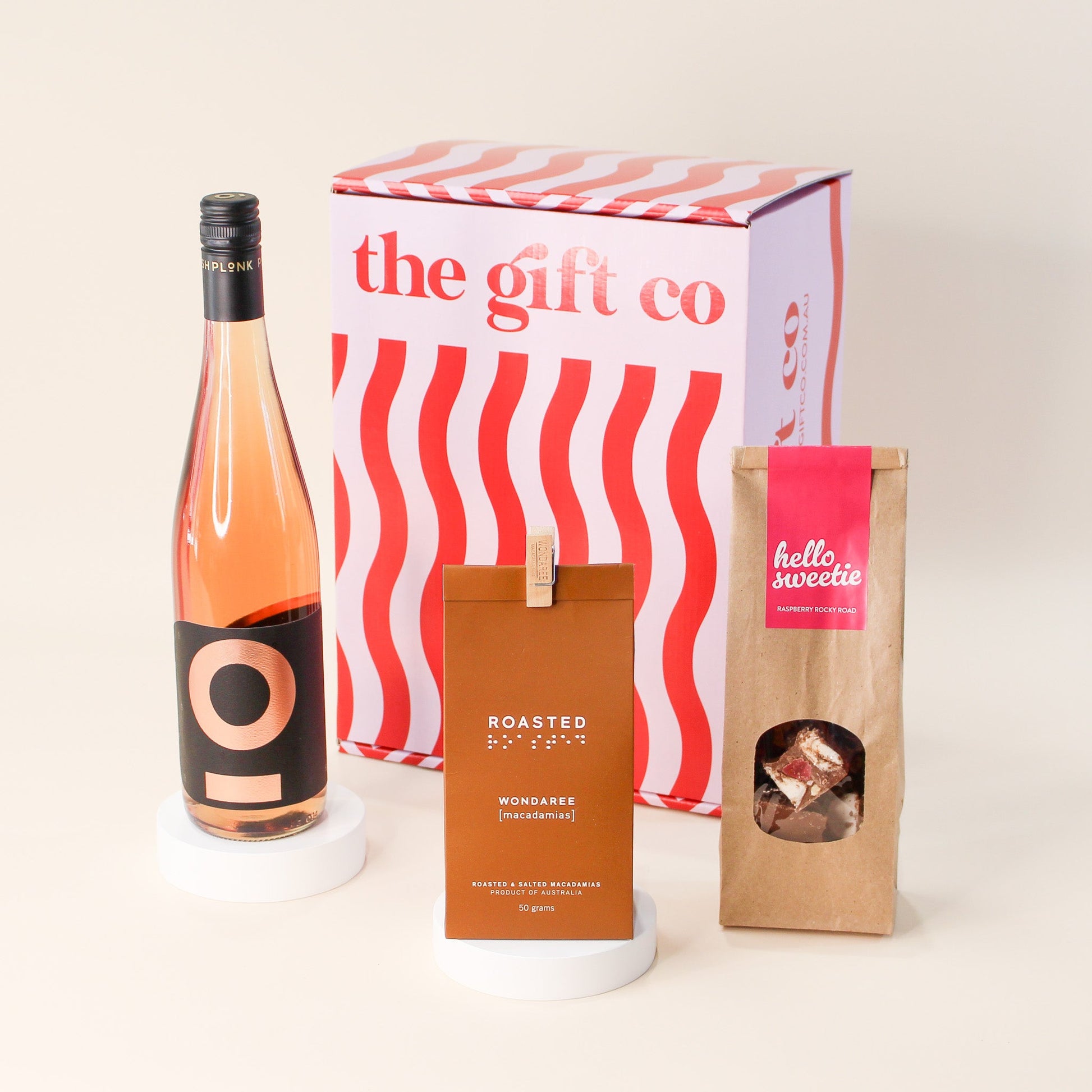 Get ready for the perfect weekend with The WKNDR Box! This collection has everything you need to kick back and relax. Start by pouring a glass of elegant Posh Plonk Rosé, then set a chill vibe with the ambient glow of Ecova's Scent Me Anything Candle. For a little something to nibble on, enjoy the simple, buttery crunch of Wondaree Natural Macadamias and the decadent sweetness of Raspberry Rocky Road. It's the ultimate treat to help you unwind and celebrate the weekend in style.